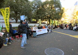 午前10時から西幸門交差点で座り込みを開始してリレートーク。午後は、厚労省前に移動し包囲行動。参加団体代表が、年金・介護・医療・生活保護・就労・住まい