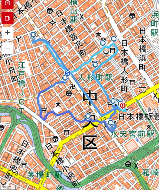 人形町駅からスタートし、途中参加の仲間も駆け付け18名の大所帯に。