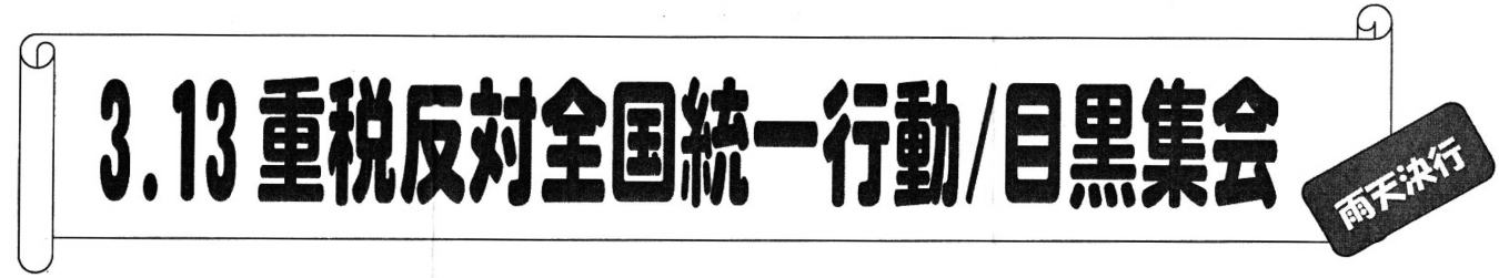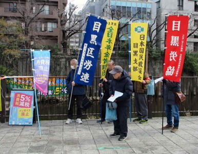 「3・13重税反対全国統一行動・目黒集会」が3月11日、中目黒舟入場公園で開かれ、目黒実行委 員会の一員として、年金者組合目黒支部も参加しました。
