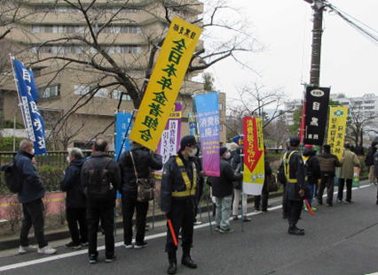 今回も健脚組が、幟や要求プラカードを掲げて元気に行進し、無事終了しました。