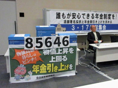 全国から組合員103名が参加して、年金改善署名85646筆を採択し、国会へ提出しました。